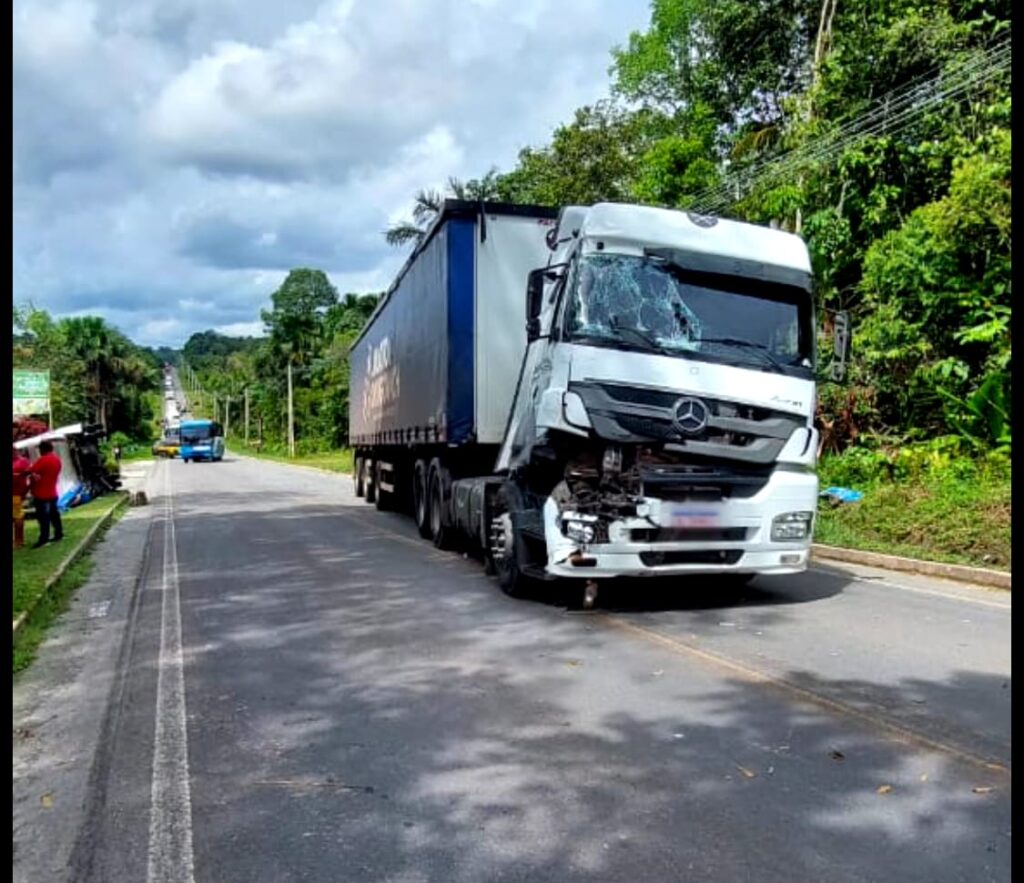 Um acidente envolvendo uma carreta e um micro-ônibus que opera no sistema intermunicipal, na manhã deste domingo (07/05), no quilômetro 901 (antigo km 17) da BR-174 (AM/RR) , deixou 11 feridos. Segundo informações de testemunhas que estavam no local, o motorista do micro-ônibus manobrava o veículo para estacionar em um café regional quando houve a colisão e o ônibus acabou tombando para um dos lados.