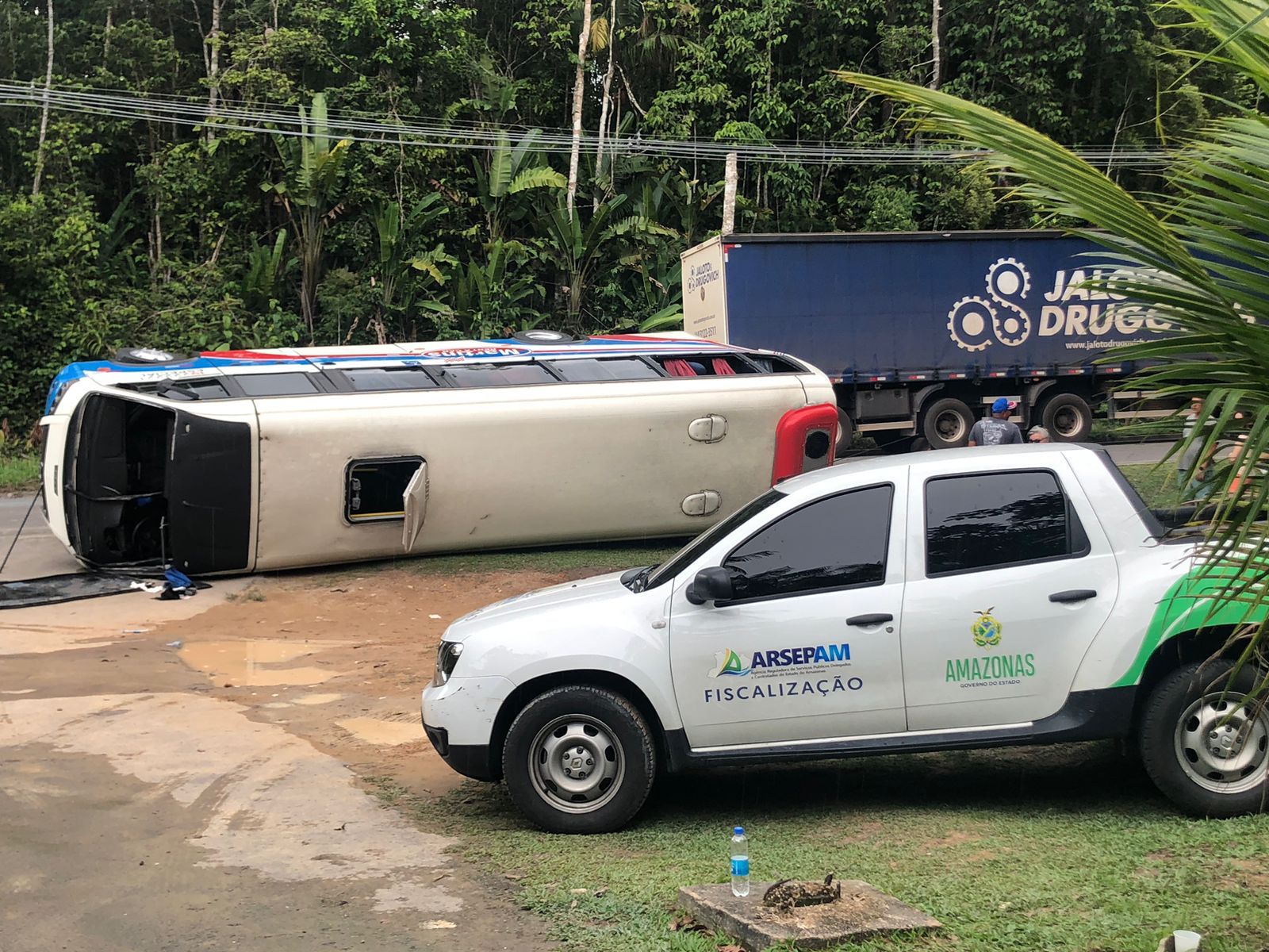Segundo a autarquia, que é responsável por coordenar e fiscalizar o serviço de transporte rodoviário intermunicipal de passageiros, o micro-ônibus da empresa Martins Transportes, de placas QZZ-OB37, estava a caminho de Presidente Figueiredo (a 117 quilômetros de Manaus), e transportava 30 pessoas no momento do incidente. Não há registro de vítimas fatais.
