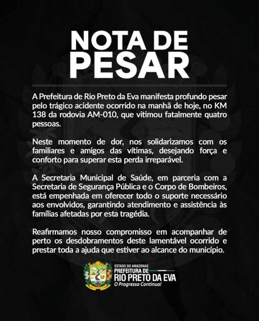 O Governo do Amazonas informou que o acidente ocorreu no quilômetro 138 da rodovia AM-010, e que, conforme informações do Instituto Médico Legal (IML), quatro pessoas morreram.