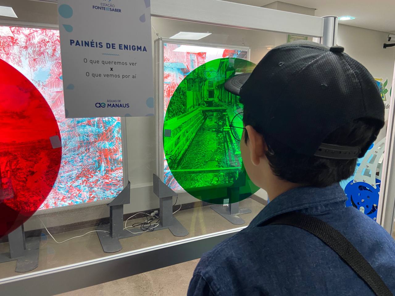 Diorama com painéis explorando a arte RGB: Aqui o objetivo é mostrar o papel e a importância da participação da população nos processos de preservação da vida no planeta. Neste espaço, os visitantes poderão visualizar paisagens conflitantes da cidade de Manaus, com ou sem tratamento de esgoto.