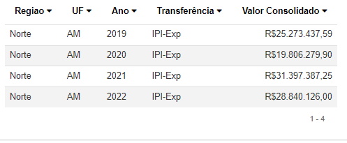 Os repasses ao Amazonas, relativos às parcelas do IPI, constam na tabela de transferências constitucionais, as quais incluem as fatias das receitas federais arrecadadas pela União, repassada aos Estados, Distrito Federal e municípios, com foco na redução das desigualdades regionais. No caso do IPI, do valor repassado aos estados, 25% devem ser destinados aos seus municípios, utilizando-se os mesmos critérios de rateio da quota-parte do ICMS.