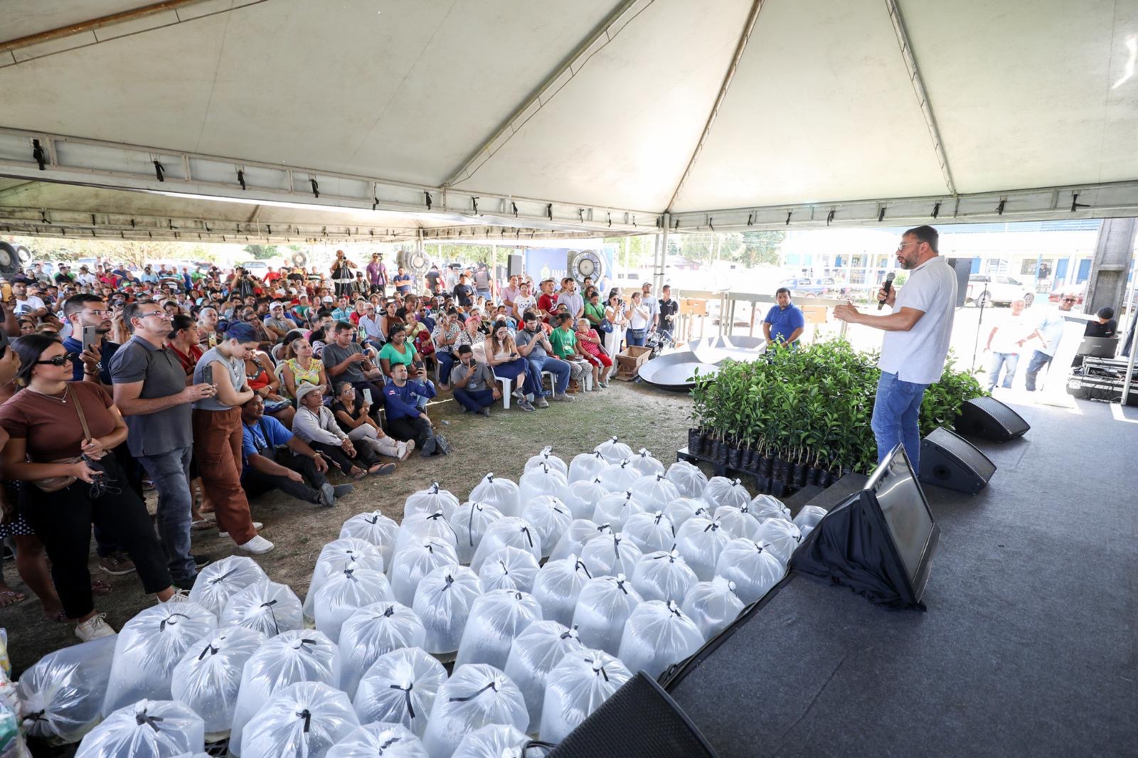 Incentivando a agricultura familiar, o governador Wilson Lima acompanhou a entrega de itens agrícolas para produtores rurais da área do ramal do Pau Rosa por meio da Secretaria de Estado de Produção Rural (Sepror). No local, foram repassados 30 mil alevinos e 4,8 mil mudas de café e citros (laranja e limão). O investimento é na ordem de R$ 66 mil e atenderá 160 produtores rurais.