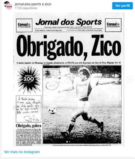 Quando Zico completou 60 anos, tive a honra de ser chamado pelo então diretor do Jornal dos Sports – periódico impresso em páginas cor de rosa, que circulou até 2010 – para contar a história do ídolo rubro-negro, tendo como fio condutor as primeiras páginas do jornal. Foram ao todo 60 capas, escolhidas pelo próprio Zico, desde a estreia dele em 1971 até a despedida em 1990. No dia do lançamento, agradeci a ele. “Agora nossas vidas se cruzaram para sempre”. Quem diria!