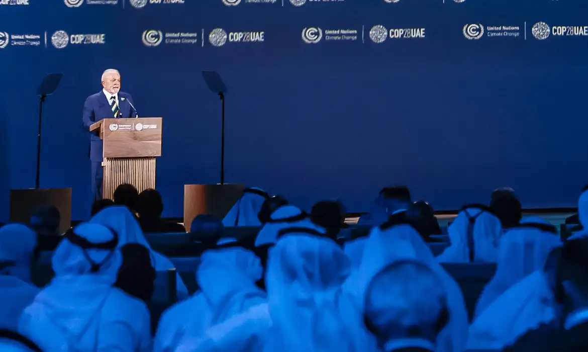 Em seu primeiro discurso na abertura da Conferência das Nações Unidas sobre Mudanças Climáticas (COP28), em Dubai, o presidente Luiz Inácio Lula da Silva disse nesta sexta-feira (1º) que o planeta está farto de acordos climáticos não cumpridos, de metas de redução de emissão de carbono negligenciadas, de discursos eloquentes e vazios e do auxílio financeiro aos países pobres que não chega. “O planeta já não espera para cobrar da próxima geração”.