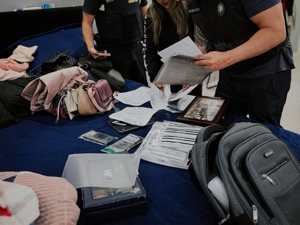 “A empresa prometia ganhos vultosos de forma fraudulenta a vítimas, como servidores públicos, utilizando dados do Portal da Transparência para induzi-las à contratação de empréstimos bancários. Os valores eram rapidamente transferidos para contas controladas pela organização criminosa, sendo firmados contratos de cessão de crédito com o objetivo de dar aparência de legalidade às operações”, relatou o delegado.