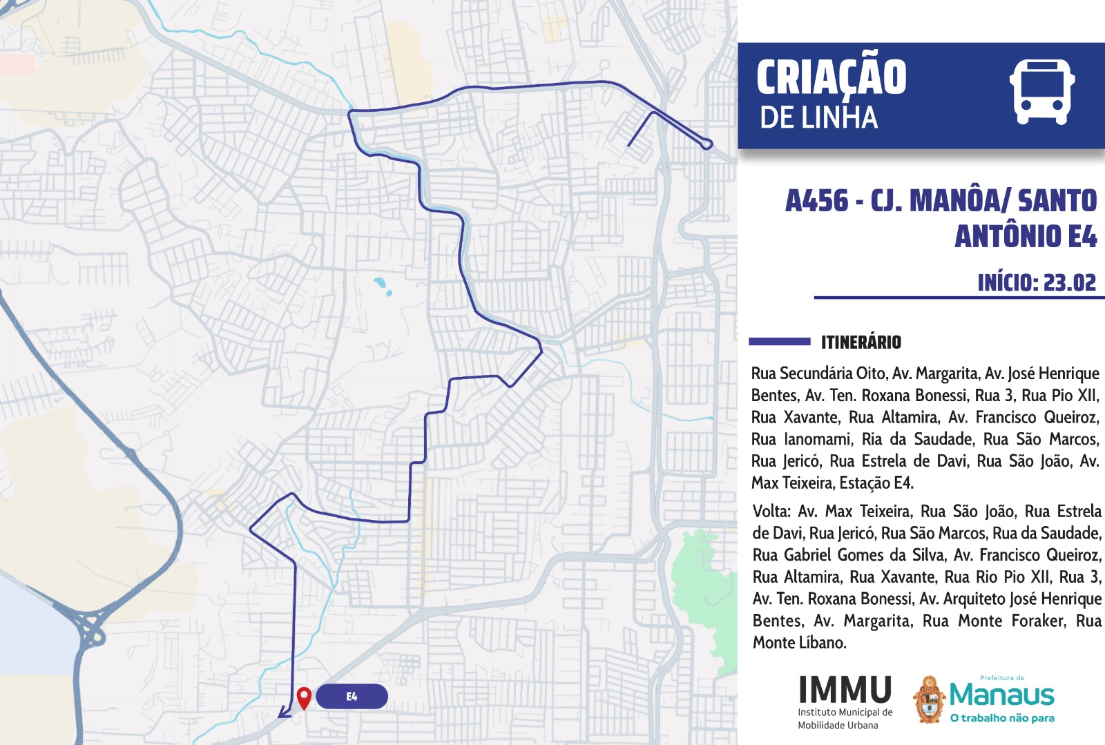 Será criada a linha A456 para atender usuários de transporte do conjunto Manoa até a Estação de Transferência 4 (Parque das Nações), zona Norte da capital, a partir de segunda-feira, 23/2.
