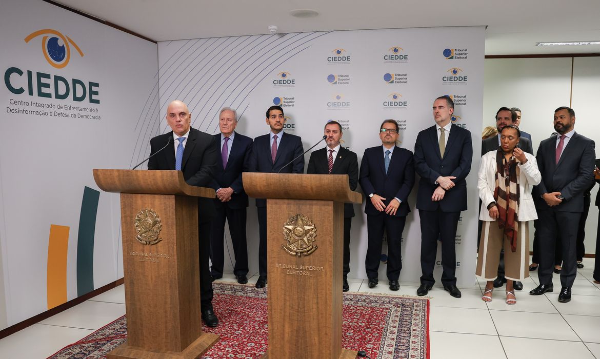 “A AGU será o braço jurídico do Ciedde, para fazer cumprir as resoluções e as determinações do TSE, quando não houver esse cumprimento imediato. Teremos um contato; um link direto com a AGU”, disse Moraes. “Se comunicadas, as plataformas que não retirarem imediatamente [a notícia falsa ou a deepfake] terão, além das sanções administrativas, ações pecuniárias”, acrescentou.
