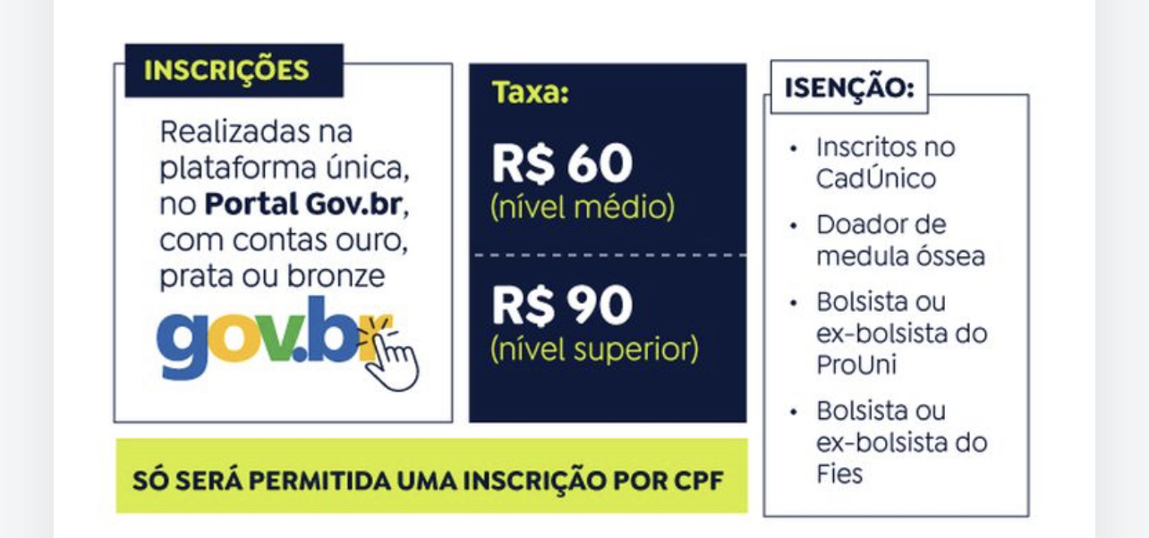 Com o período de inscrição encerrado no último dia 9, o “Enem dos concursos” teve 2,65 milhões de candidatos cadastrados, dos quais, 1,28 milhão ainda precisavam pagar a taxa para confirmar a participação no processo seletivo. Entre eles, estão os candidatos que tiveram os pedidos de isenção da taxa negado.