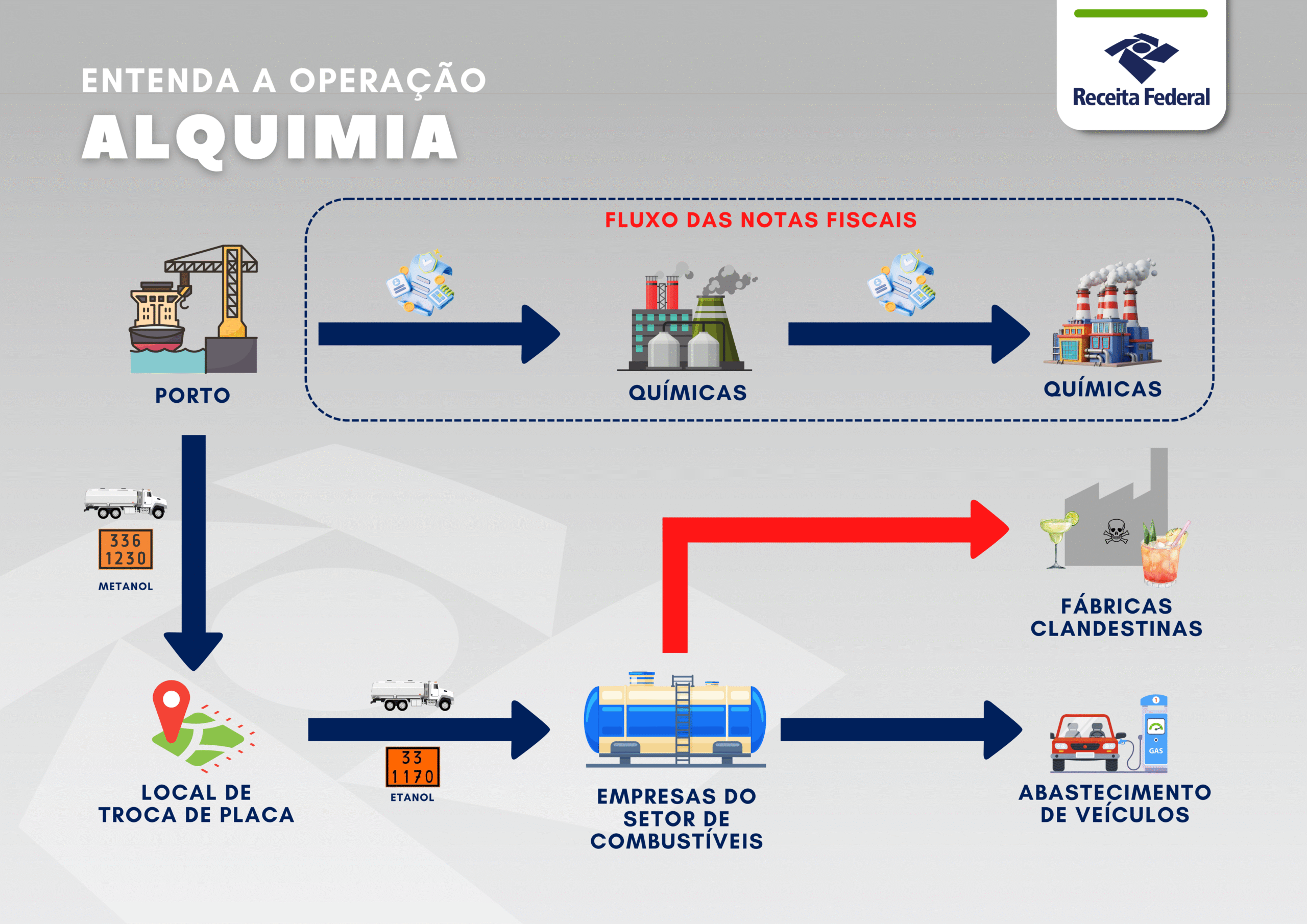 A Operação Alquimia é um desdobramento das operações Boyle e Carbono Oculto, que revelaram um esquema de adulteração de combustíveis com metanol. Há fortes indícios de que esse combustível adulterado esteja sendo utilizado na fabricação clandestina de bebidas alcoólicas, configurando uma cadeia de irregularidades com alto potencial de risco à saúde pública.
