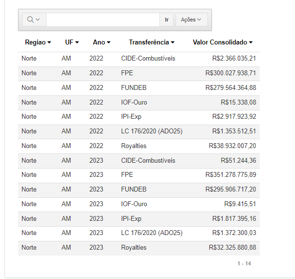 No caso do Amazonas, tanto em janeiro deste ano, quanto no mesmo período de 2022, a maior parte dos repasses saiu do FPE, Fundeb e royalties (este último, vinculado à produção de petróleo e gás natural).