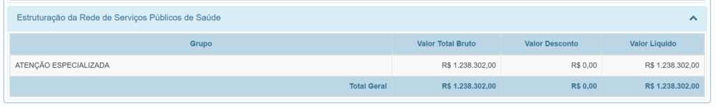 As tabelas acima, recortadas do portal de consultas do FNS, mostram a redução com base nos valores brutos. Em valores líquidos, os quais consideram deduções, mostram que uma das áreas mais afetadas foi a da atenção especializada.